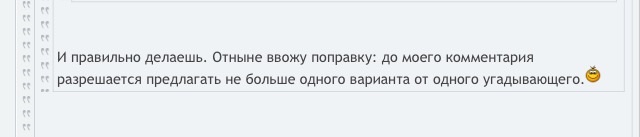 И правильно делаешь. Отныне ввожу поправку: до моего комментария разрешается предлагать не больше одного варианта от одного угадывающего.