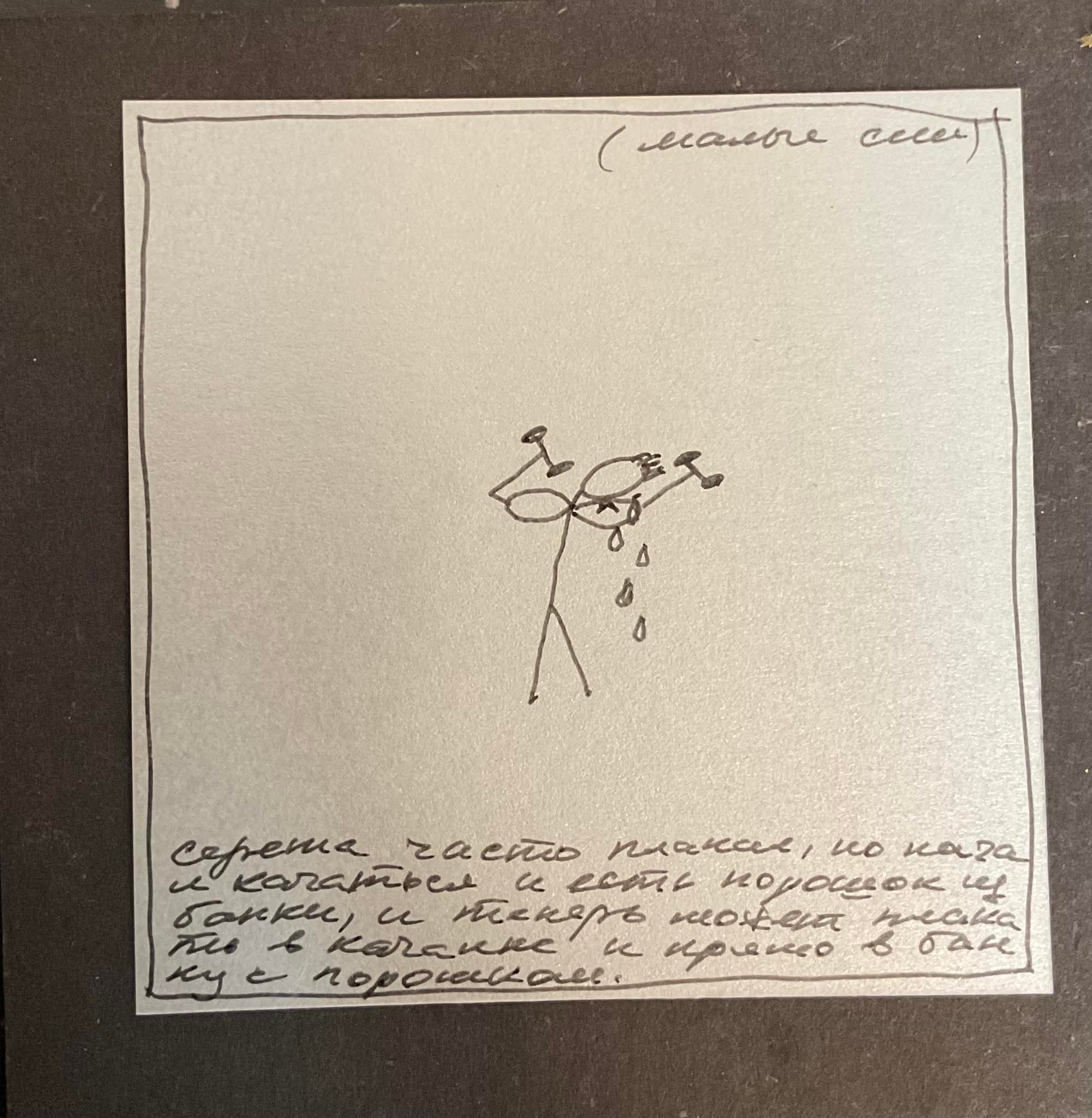 "Сережа часто плакал, но потом он начал качаться и есть порошок из банки, и теперь он может плакать в качалке и прямо в банку с порошком".