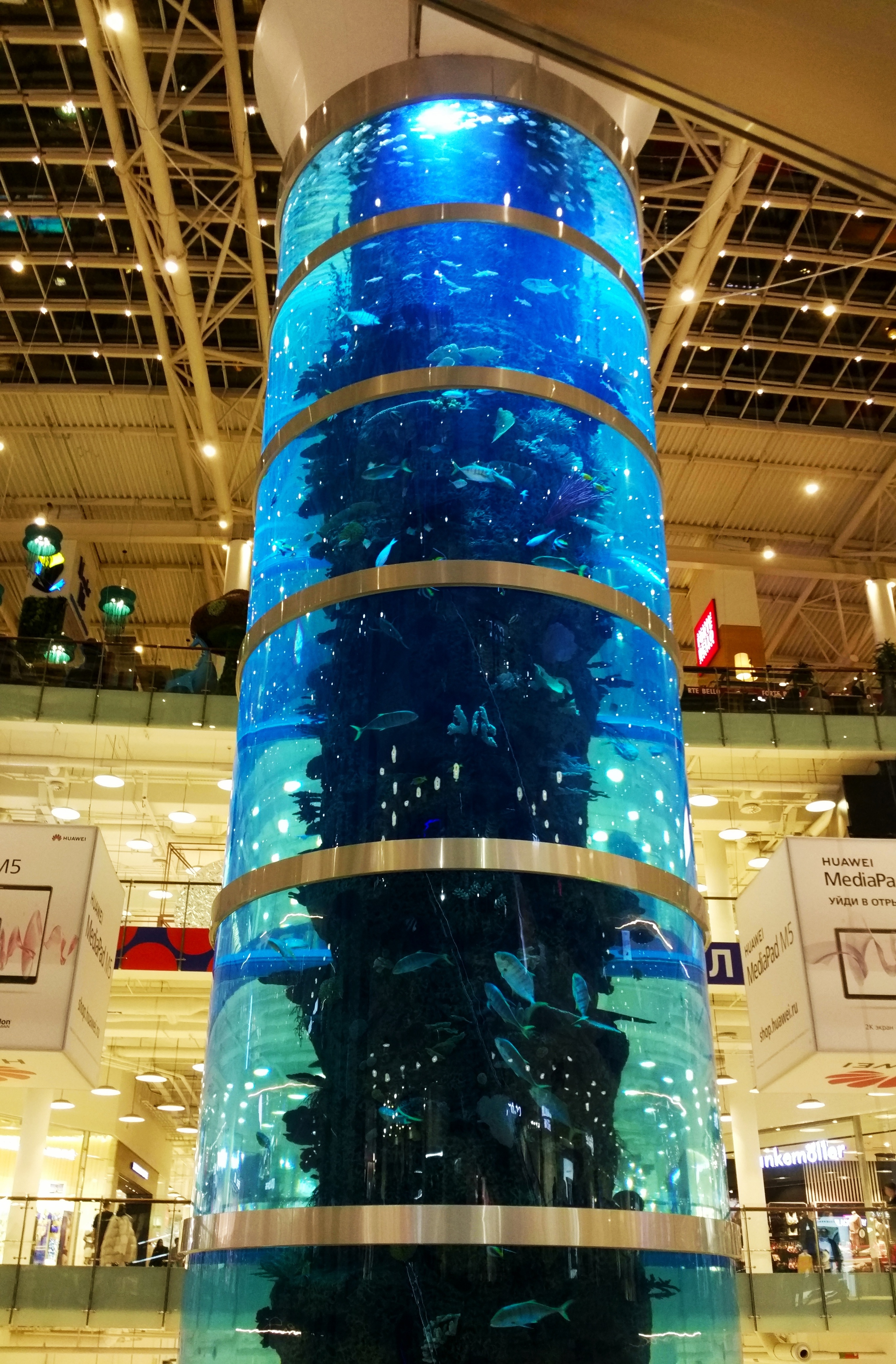 Самый обычный торговый центр в Москве. Посреди центра установлен аквариум, который, относительно недавно, считался самым высоким в мире, согласно книге рекордов Гиннесса :shock: