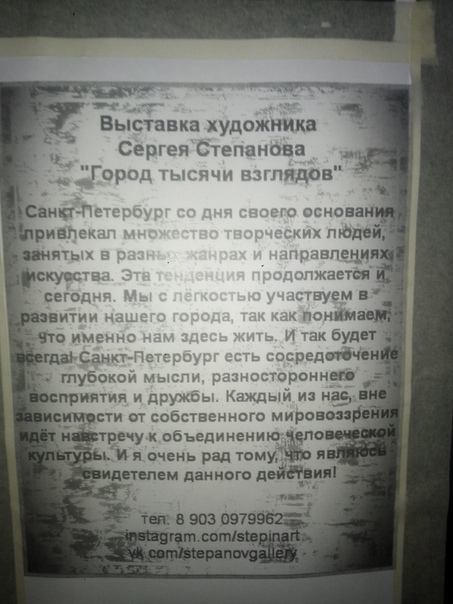 А меня давеча занесло в Анненкирхе (она же церковь святой Анны) что на Кирочной улице. Так вот, кроме того, что это само по себе очень колоритное и антуражное место, в настоящее время там выставлены работы некого художника Сергея Степанова. Работ не так много и на полноценную выставку экспозиция не тянет, однако по моему личному мнению, предоставленные работы крайне интересные, необычные и достойы ознакомления. Мне по крайней мере зашло, скажу больше, я даже в некотором восторге.
