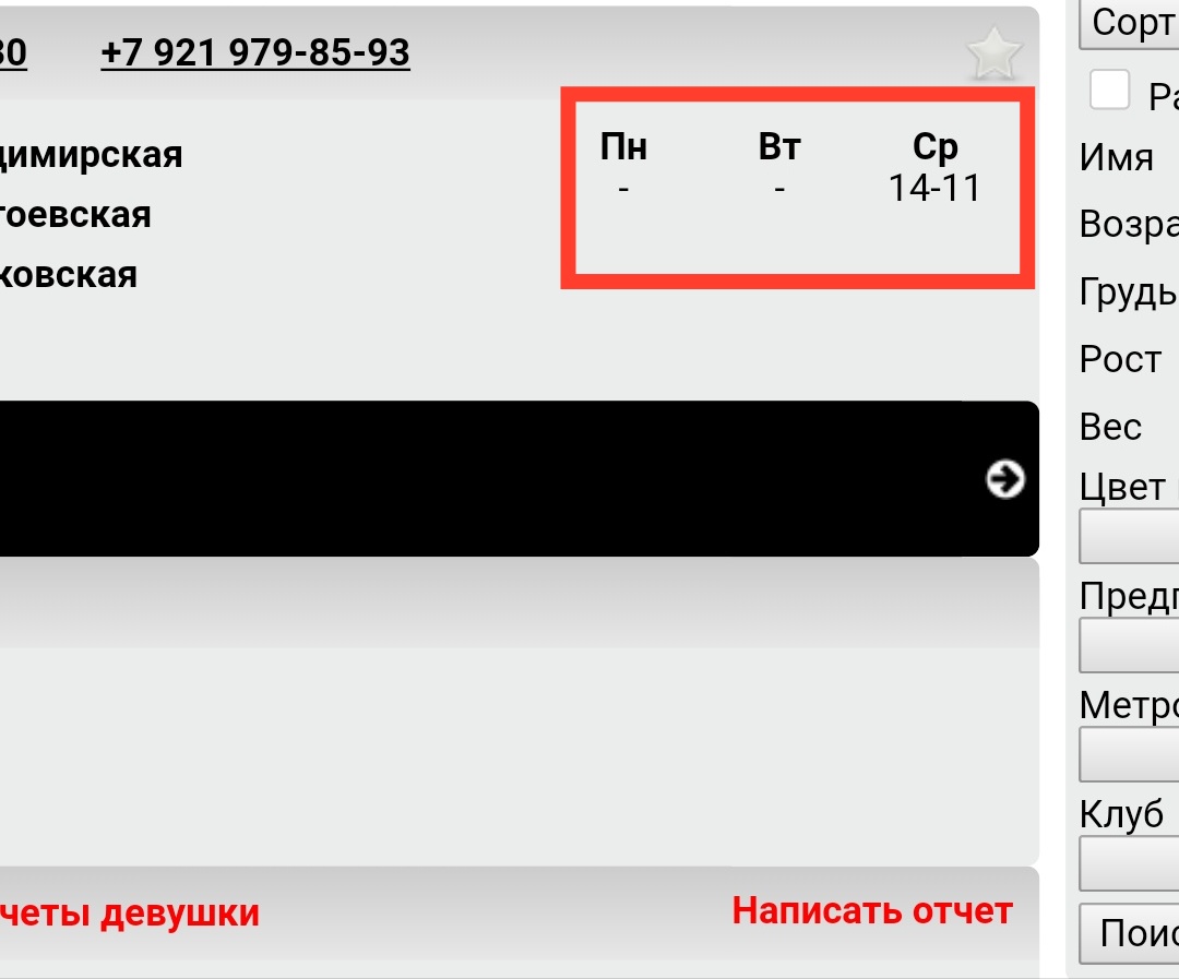 Ещё добавить бы возможность показать только работающих сегодня девушек определённого клуба. Это полезно когда хочешь посетить сегодня определённый клуб.