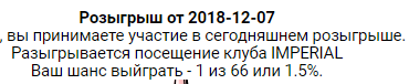 После успешного обнаружения красной кнопки и подтверждения, что ты не робот можно перейти на страницу розыгрыша. Там, где написано "вы принимаете участие в сегодняшнем розыгрыше. Разыгрывается посещение клуба..."