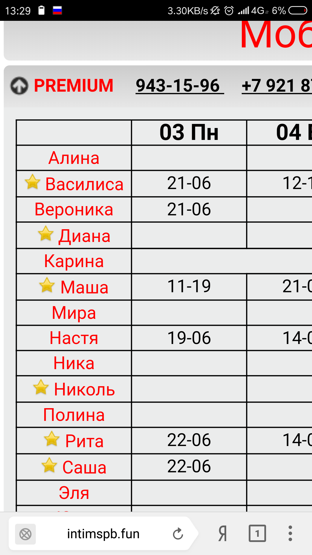 2) Сделайте на странице расписания возможность отфильтровать девушек, которые сегодня работают. И возможность показать их не списком, а анкетами. Это есть в мобильной версии сайта. Не понятно почему это не сделано на полной версии.