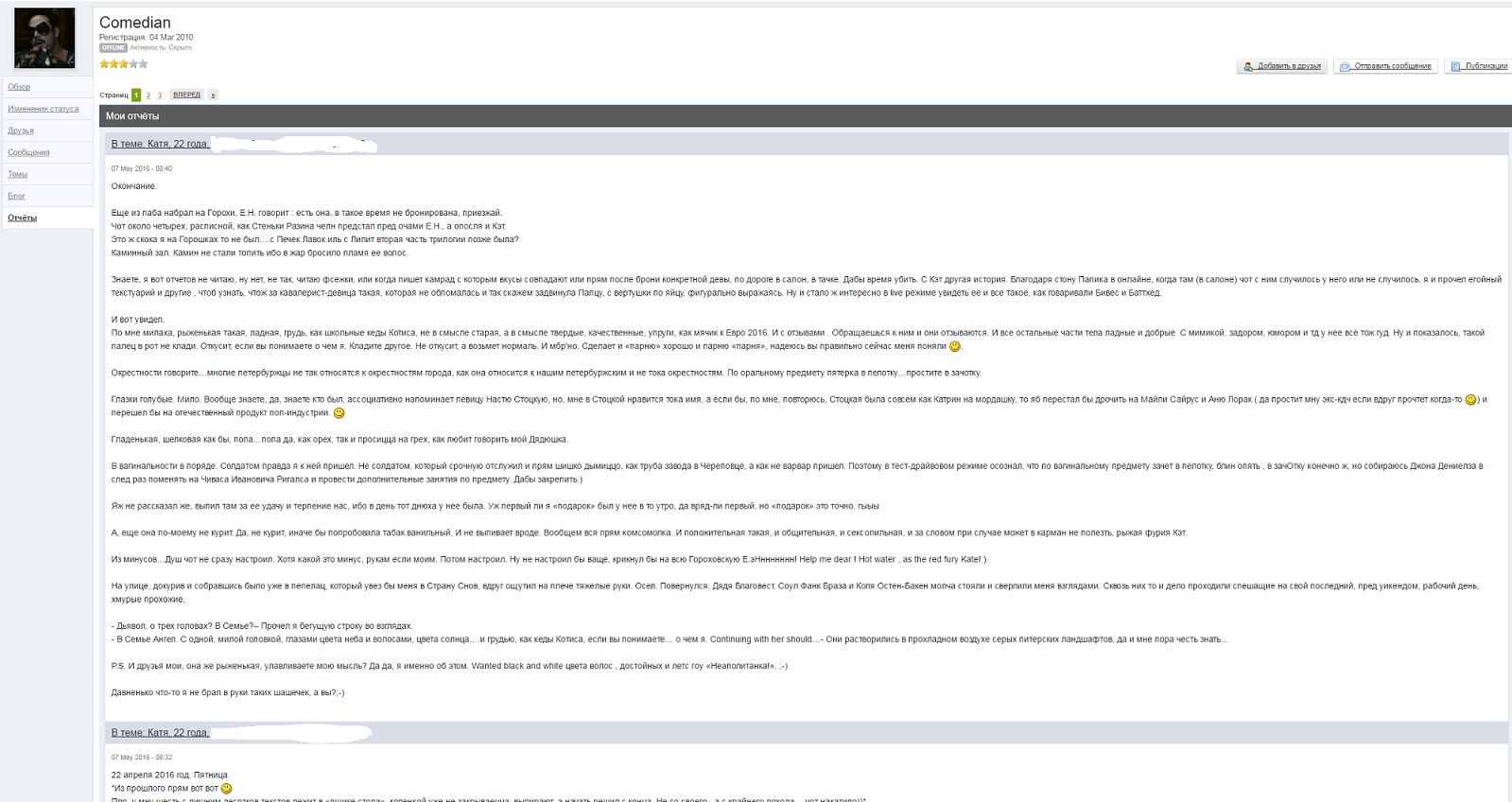Ну херово значит смотрел. В отчетной, отчет про проститутку. Второй пост после топикстартера