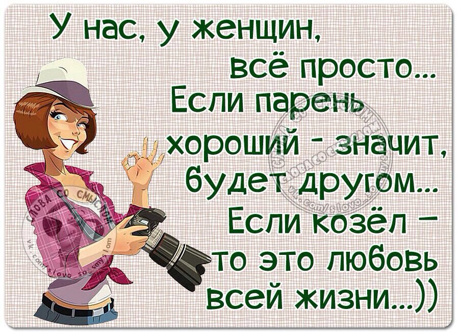 JohnConstantine » 44 минуты назад писал(а):Женщина (во всех проявлениях) всегда была для мужика объектом сексуального желания. Это основной инстинкт и от него никуда не денешься. Правду говорят - пока не трахнулись, женщина интересна. Как только это случилось, теряется весь к ней интерес. Это как покорить очередную вершину. Поэтому в женщине должно быть нечто большее, чем просто желание её трахнуть, то что будет перекрывать инстинкт - душа, ум, отношение, в каждой девушке свое, что притягивает мужика.