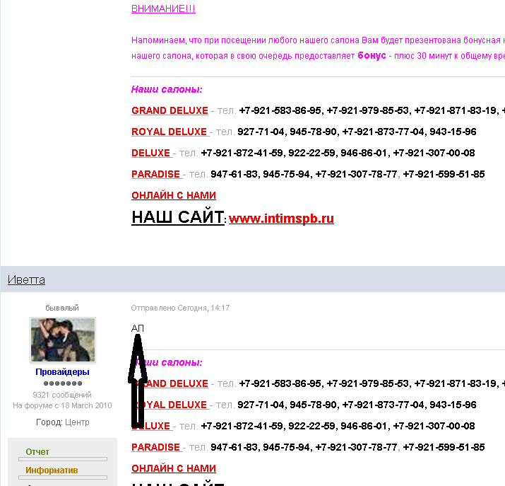 Twin писал(а):nagibatel писал(а):Тебе предоставили возможность что бы тёлки у тебя хуй сосали почти бесплатно а ты даже отзыв расписать не можешь по человечески. А потом жалуетесь что тёлки рожи свои воротят от вас.