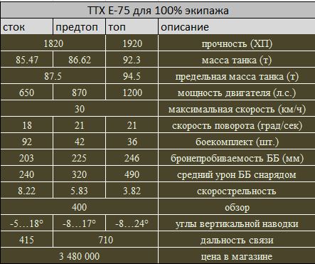 Экипаж Е-75 включает в себя 5 немцев, в этом он полностью идентичен экипажу Королевского Тигра. Переобучение за серебро обойдется в 100 000 кредитов, но мы бы рекомендовали выполнить эту операцию за золото, в таком случае не произойдет потери навыков, стоить эта операция будет 1000 золота.