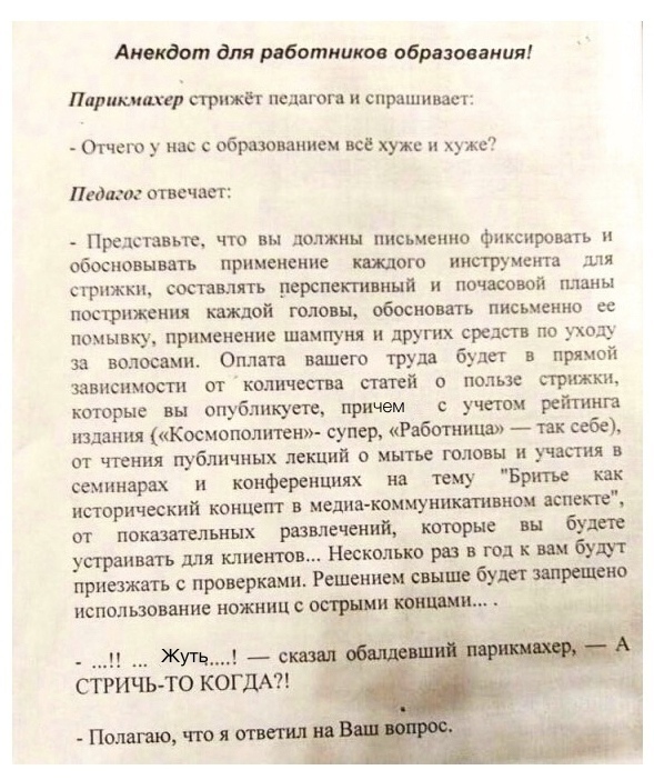 Заика приходи к доктору и говорит: - Д-д-доктор, п-п-омогите! У м-м-меня от з-з-заикания уже ш-ш-шея б-б-болит! Доктор обследовал его и говорит: - Вам надо отрезать половину члена, так как слишком много крови уходит туда, и вы поэтому заикаетесь. Заика соглашается и доктор проводит операцию. Через месяц бывший заика опять приходит к доктору и говорит: - Доктор, операция действительно помогла, я перестал заикаться, но теперь моя жена очень недовольна. Нельзя ли пришить все обратно? Доктор: - Из-з-звините, н-н-нет!