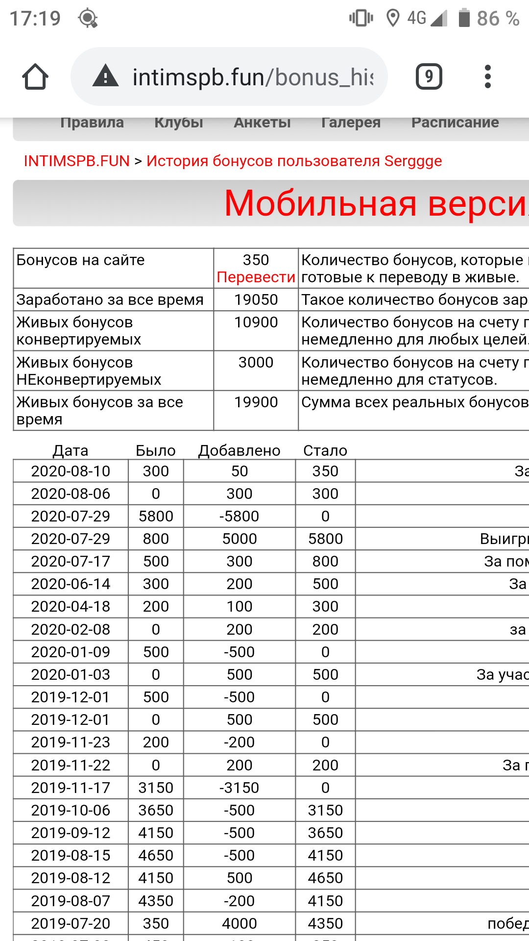 Перевод бонусов с сайта в "живые"