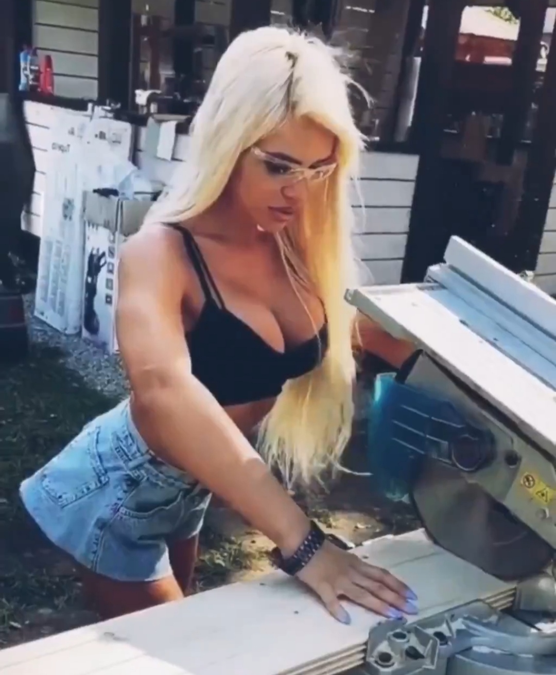 Вот сучка, технику безопасности нарушает, надо её выеб.... Ть за это.