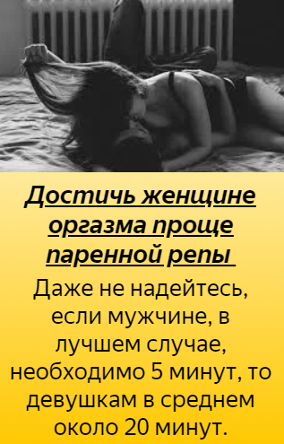 В лучшем случае скажут тебе минут через 30, что ты её "довёл"...evoFuente » 2 минуты назад писал(а):Никогда они такого на ухо не шепчут...В лучшем случае скажут тебе минут через 30, что ты её "довёл"...